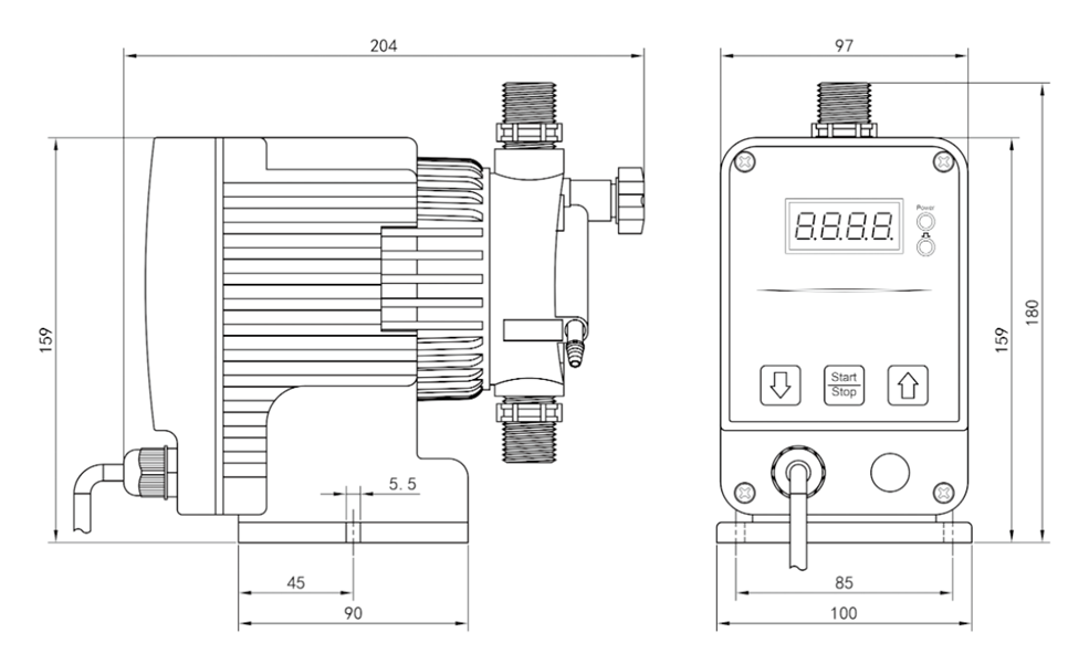 FQ Series Electromagnetic metering pump Installation Dimension Diagram Unit: mm